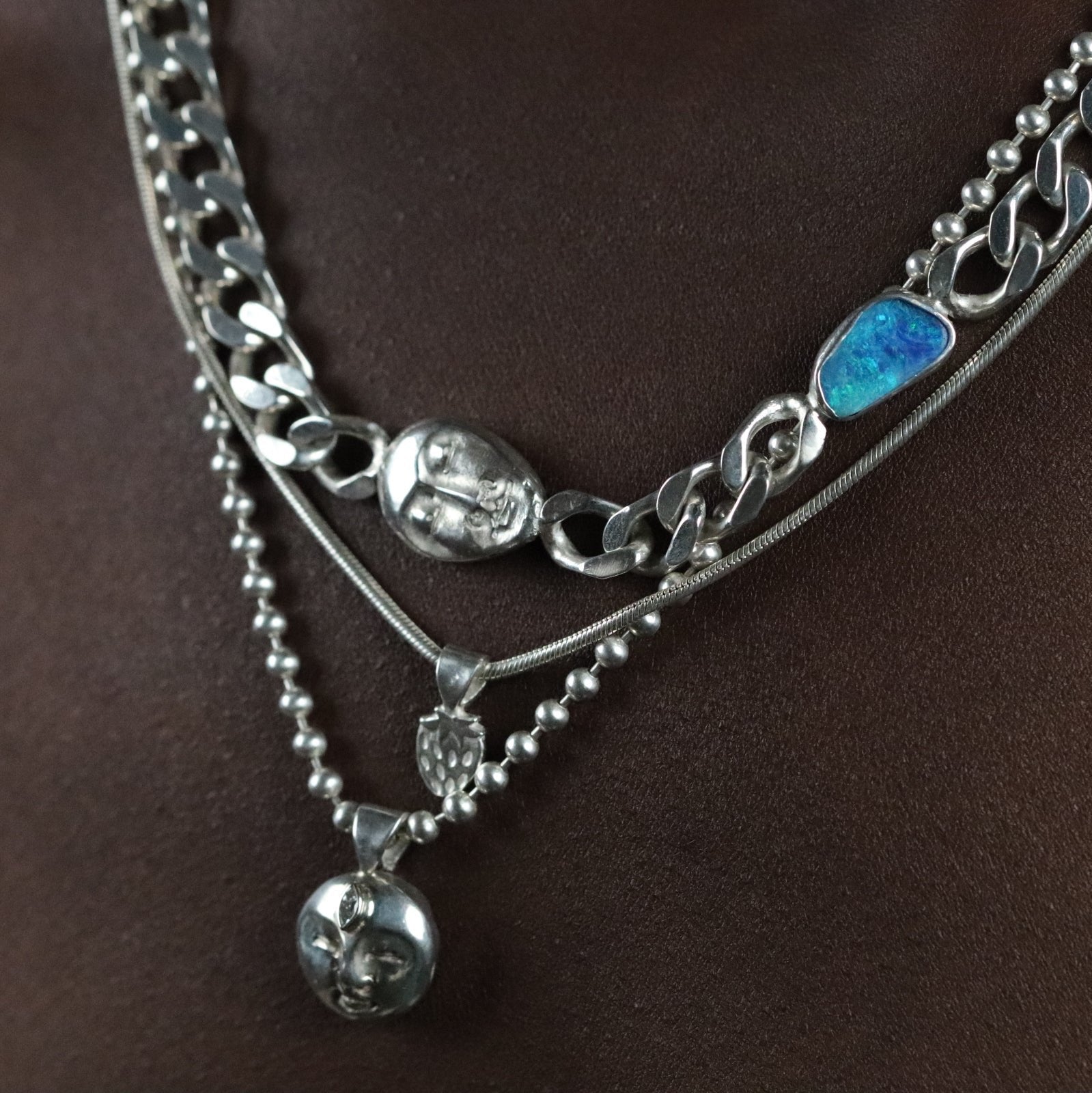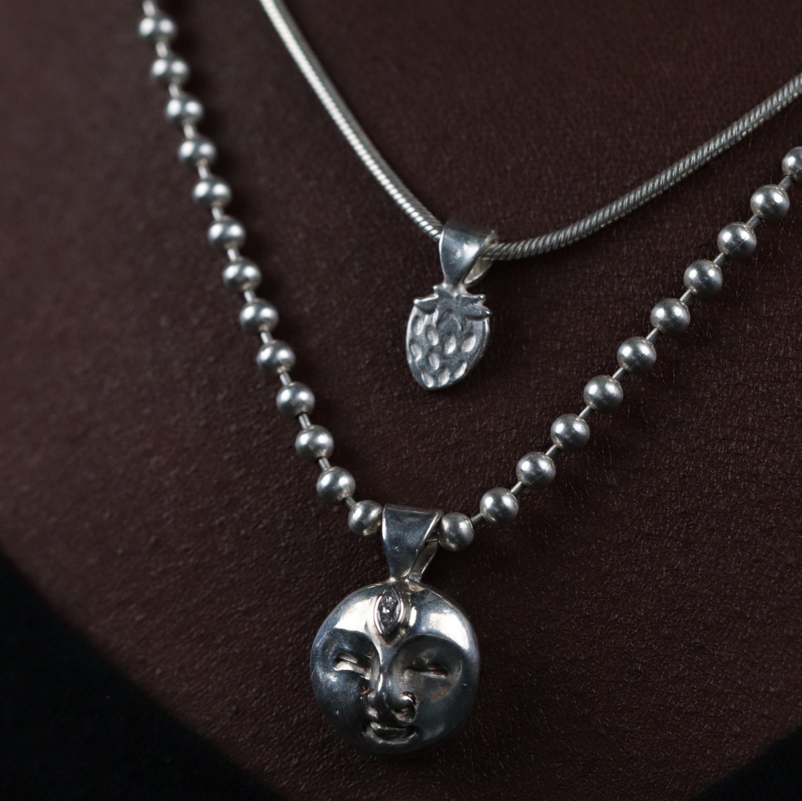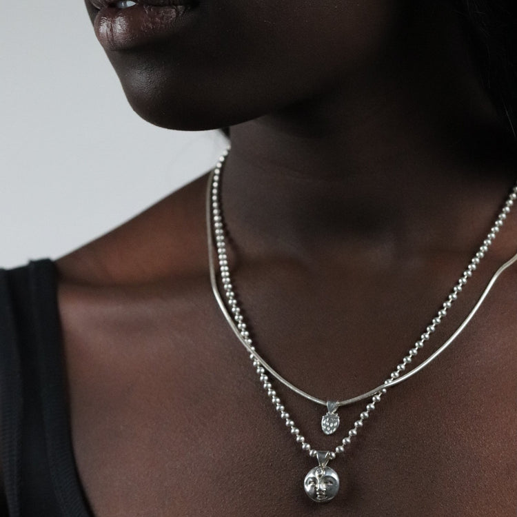 You can choose just the pendent, a bubble chain or a thick oval chain at 18 inches in length.