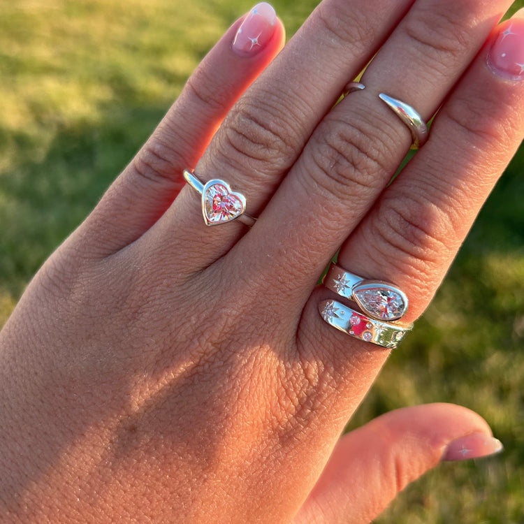 A stunning Lab Heart Pink ring. A unique style that makes hearts looking stunning on your hand. Perfect for those who never miss a beat – this stylish and one-of-a-kind Lab Heart Pink ring shows off your strong sense of style (and heart). Get ready to turn heads and steal hearts wherever you go!