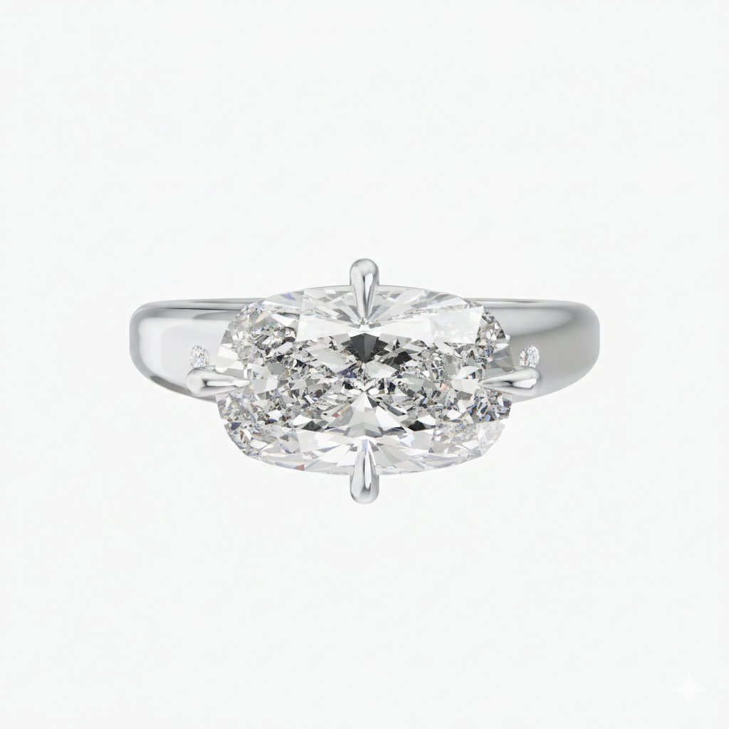 "Claire" is the French term for Bright, and this piece truly lives up to its name. This exquisite signet ring features a stunning 2.5 carat elongated cushion-cut laboratory-grown diamond, framed by two brilliant stars. To complete the brilliance, the band is adorned with 2mm diamonds, adding a continuous sparkle to the handcrafted design.